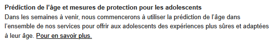 Bon, c’est pas pour dire, mais la fonctionnalité de prédiction de l’âge ne marche pas si bien. Donc il va falloir que vous nous aidiez un peu, alors si vous pouviez créer des comptes d’adolescents, ça nous permettrait d’avoir des datas de référence pour entrainer nos modèles.